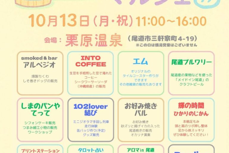 10月13日(月祝)「おふろやマルシェ」に出店します